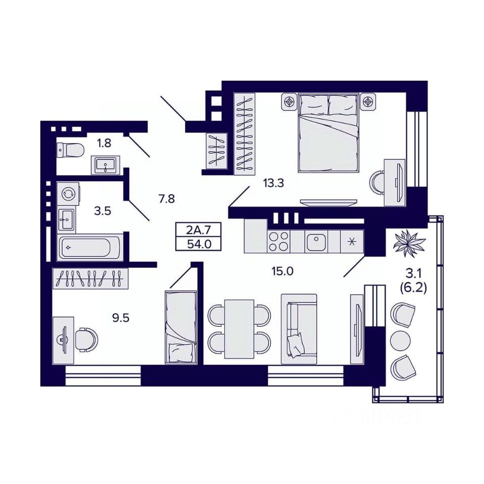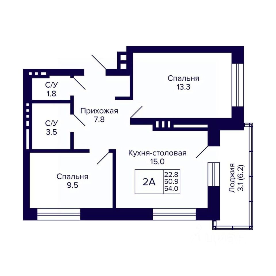 Общая площадь54 м2