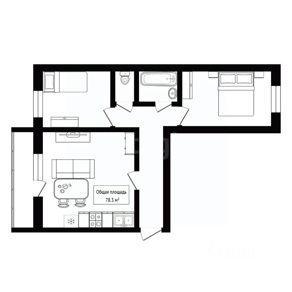 Ключевые преимущества: Уникальная планировка: Просторная квартира, объединяющая кухню и гостиную и 2 изолированные комнаты. У каждого члена семьи будет личное пространство.