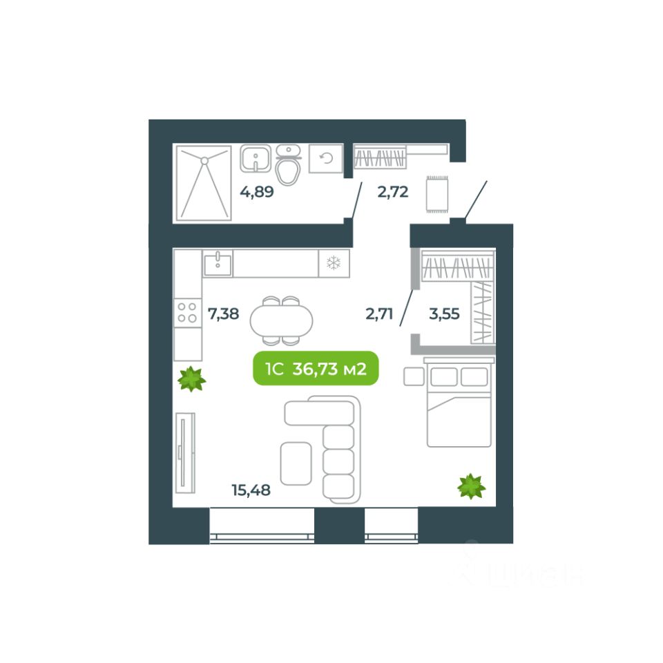 Продаётся студия в строящемся доме (Дом 13), срок сдачи: III-кв. 2026, общей площадью 36.73 кв.м., на 1 этаже. Жилой комплекс ''Ботаника'' от застройщика ''Ботаника Девелопмент'' расположен в южной части р.п. Кольцово по ул. Кольцевая.