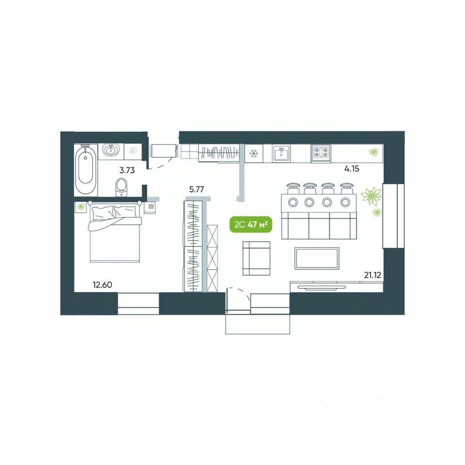 Продаётся 2-комнатная квартира в сданном доме (Дом 10), срок сдачи: I-кв. 2025, общей площадью 47.36 кв.м., на 4 этаже. Жилой комплекс ''Ботаника'' от застройщика ''Ботаника Девелопмент'' расположен в южной части р.п. Кольцово по ул. Кольцевая.