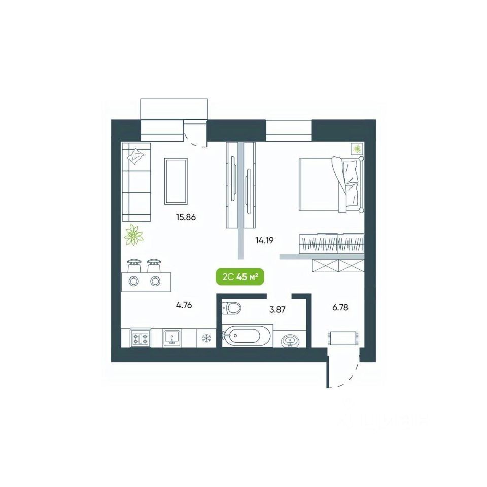 Продаётся 2-комнатная квартира в сданном доме (Дом 10), срок сдачи: I-кв. 2025, общей площадью 45.46 кв.м., на 3 этаже. Жилой комплекс ''Ботаника'' от застройщика ''Ботаника Девелопмент'' расположен в южной части р.п. Кольцово по ул. Кольцевая.
