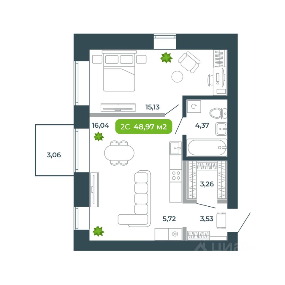 Продаётся студия в строящемся доме (Дом 12), срок сдачи: III-кв. 2026, общей площадью 48.97 кв.м., на 3 этаже. Жилой комплекс ''Ботаника'' от застройщика ''Ботаника Девелопмент'' расположен в южной части р.п. Кольцово по ул. Кольцевая.