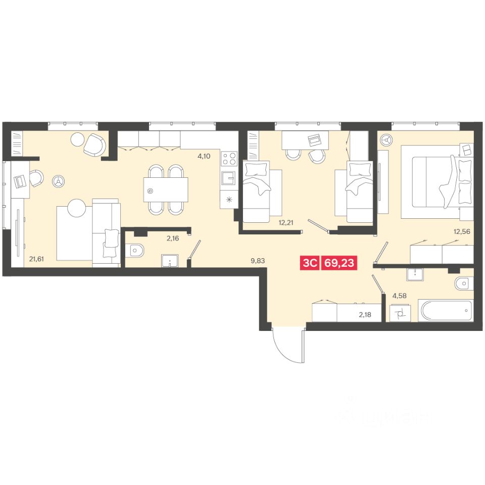 Общая площадь69,23 м2