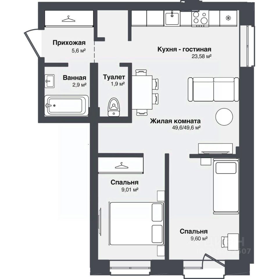 В комплексе представлены студии и 13-комнатные квартиры площадью от 30,2 до 91,9 м². Планировки продуманы для удобной жизни — просторные кухни-гостиные, террасы и панорамные окна наполняют квартиры светом.