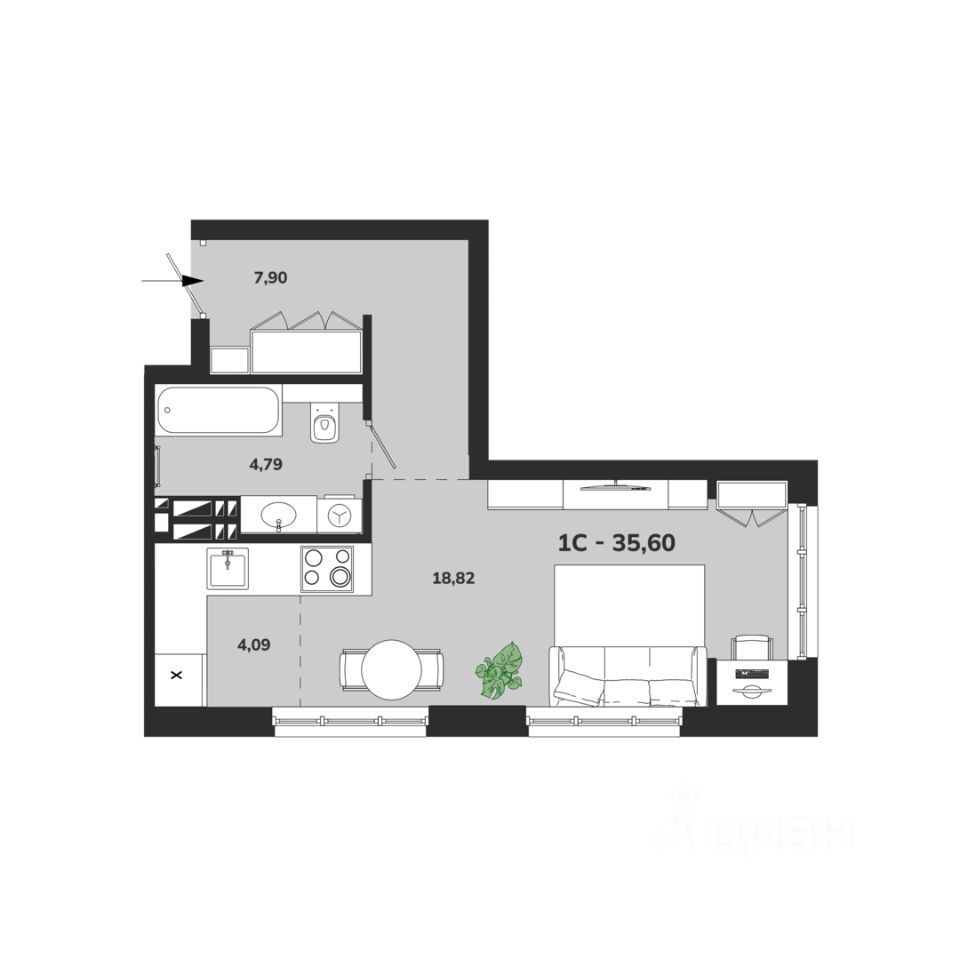 Общая площадь35,6 м2