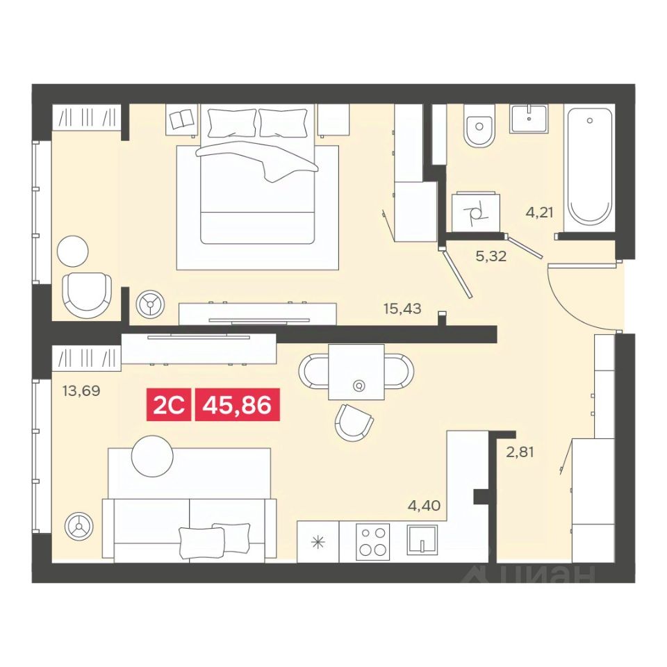 Общая площадь45,86 м2