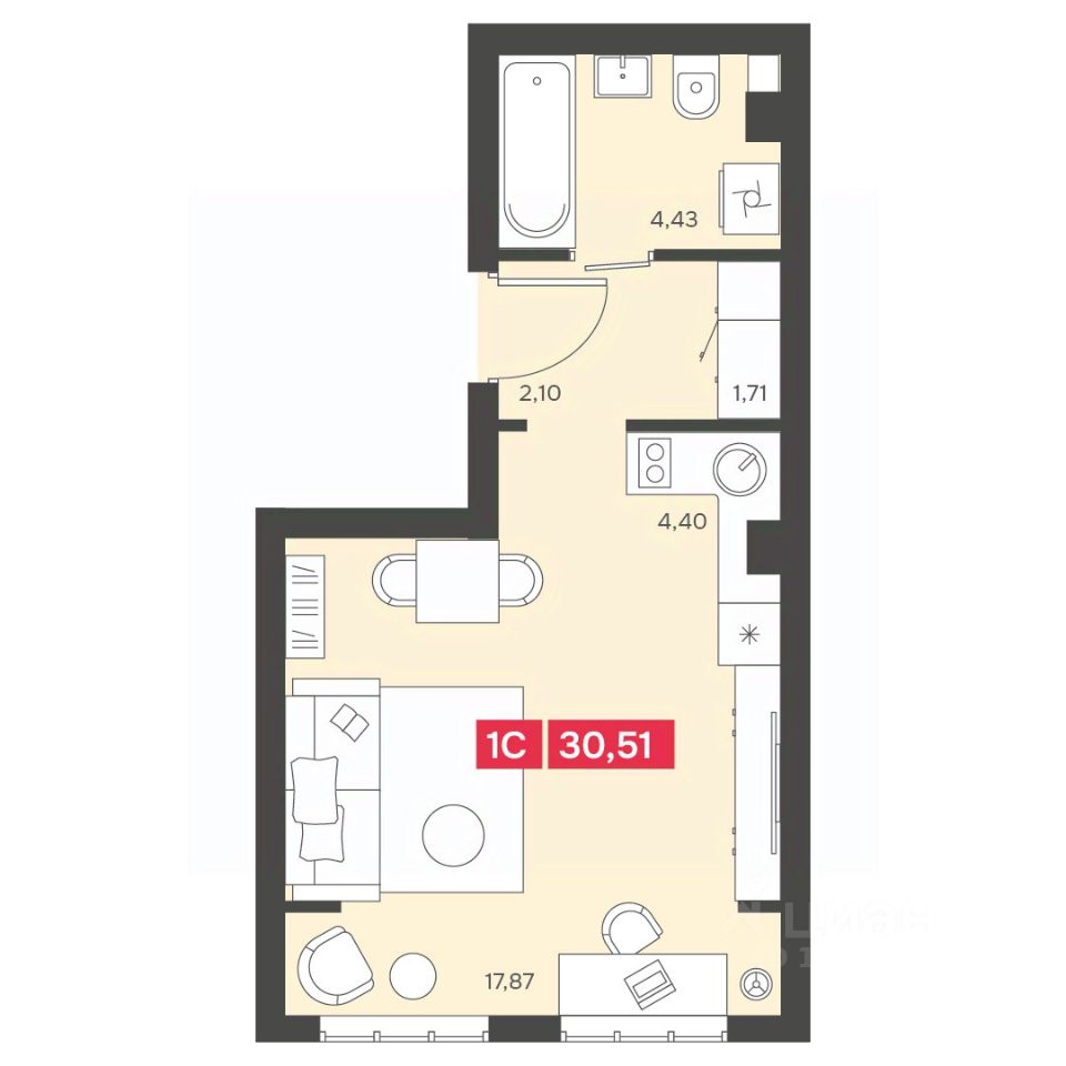 Общая площадь30,51 м2