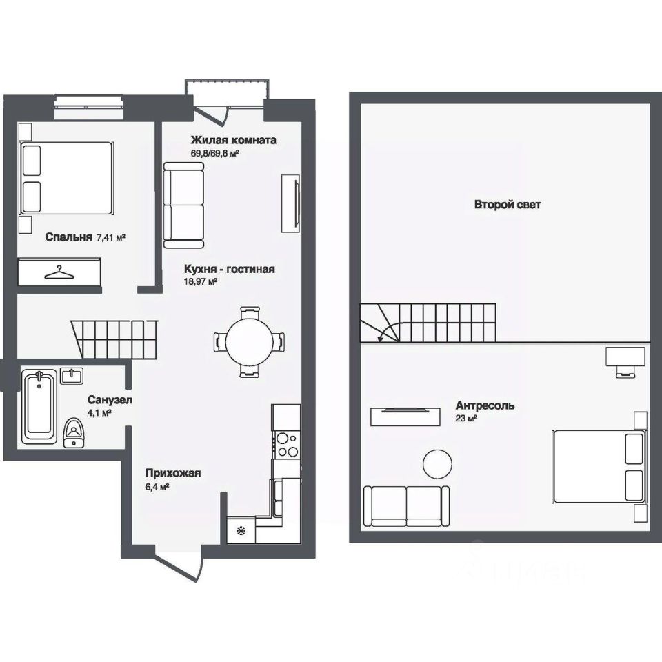 В комплексе представлены студии и 13-комнатные квартиры площадью от 30,2 до 91,9 м². Планировки продуманы для удобной жизни — просторные кухни-гостиные, террасы и панорамные окна наполняют квартиры светом.
