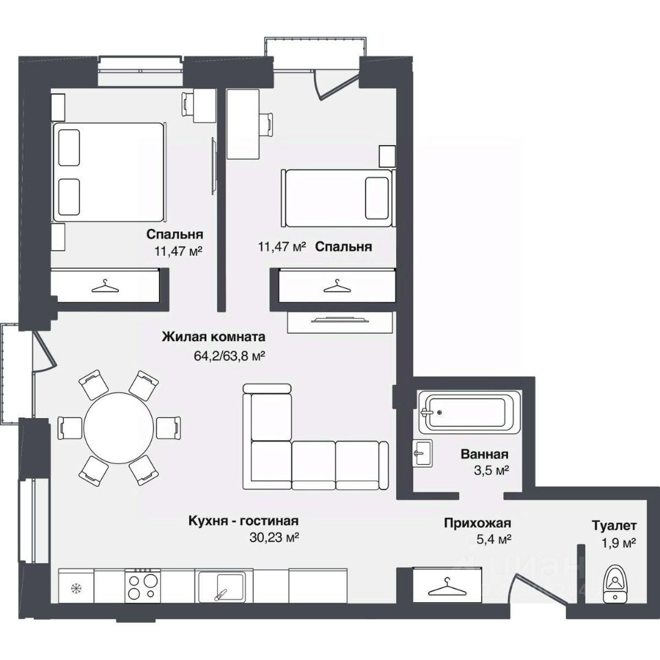 126 185 ₽/м²