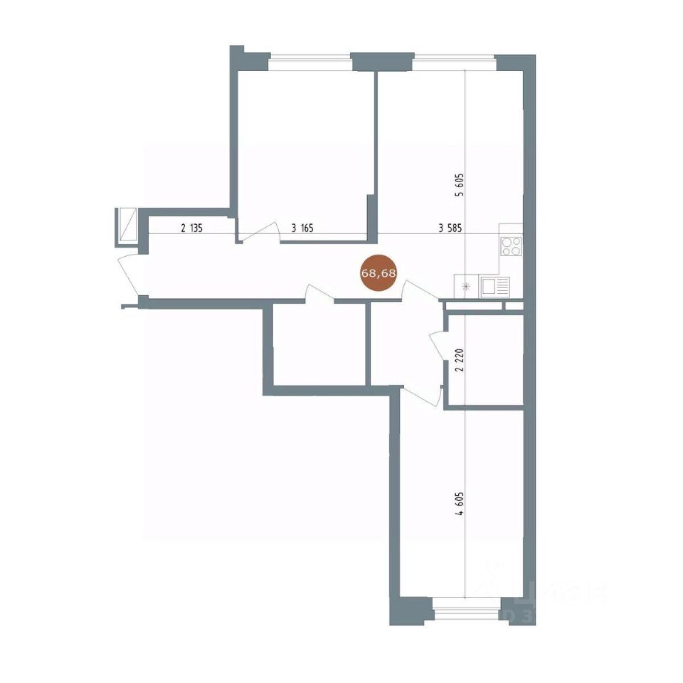 Общая площадь68,68 м2