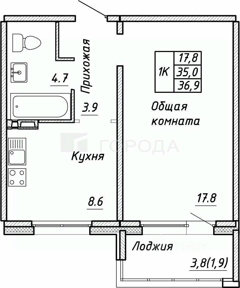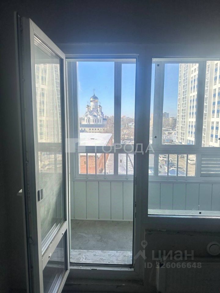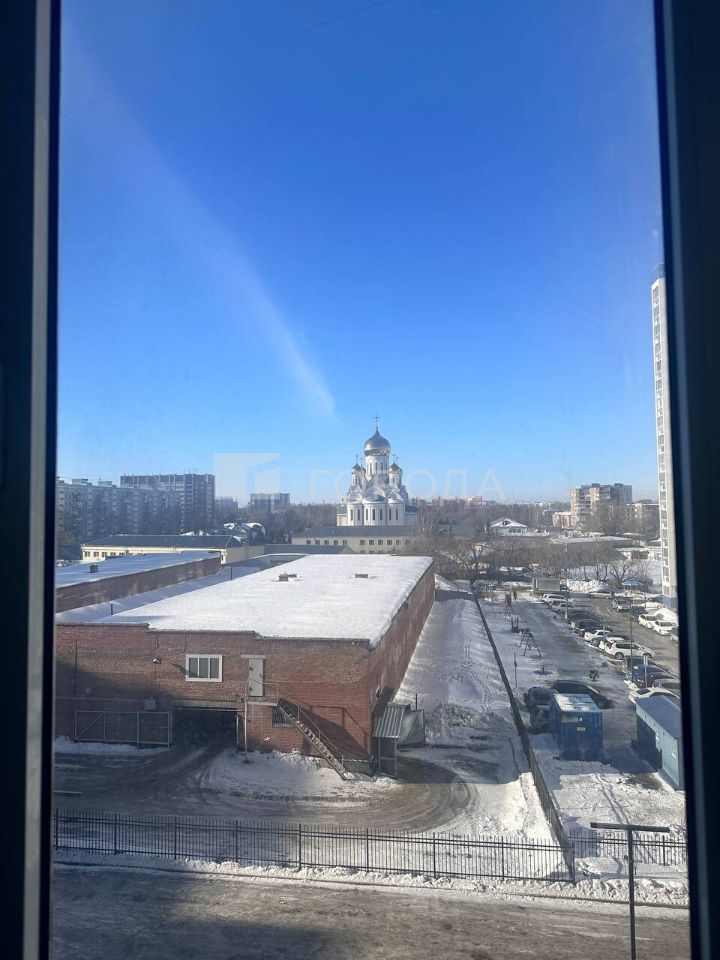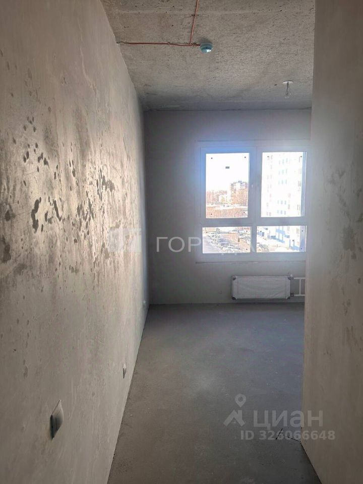Квартира расположена на 5 этаже 17-этажного панельного дома, построенного в 2025 году. Общая площадь квартиры — 34,7 кв. м, высота потолков — 3 метра. Чистовая отделка, выровненные стены, установлены розетки и выключатели, стяжка, просторная застекленная лоджия. Окна выходят во двор, в сторону Троицкого сквера.