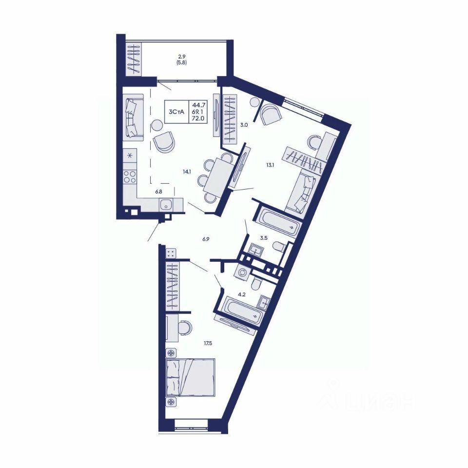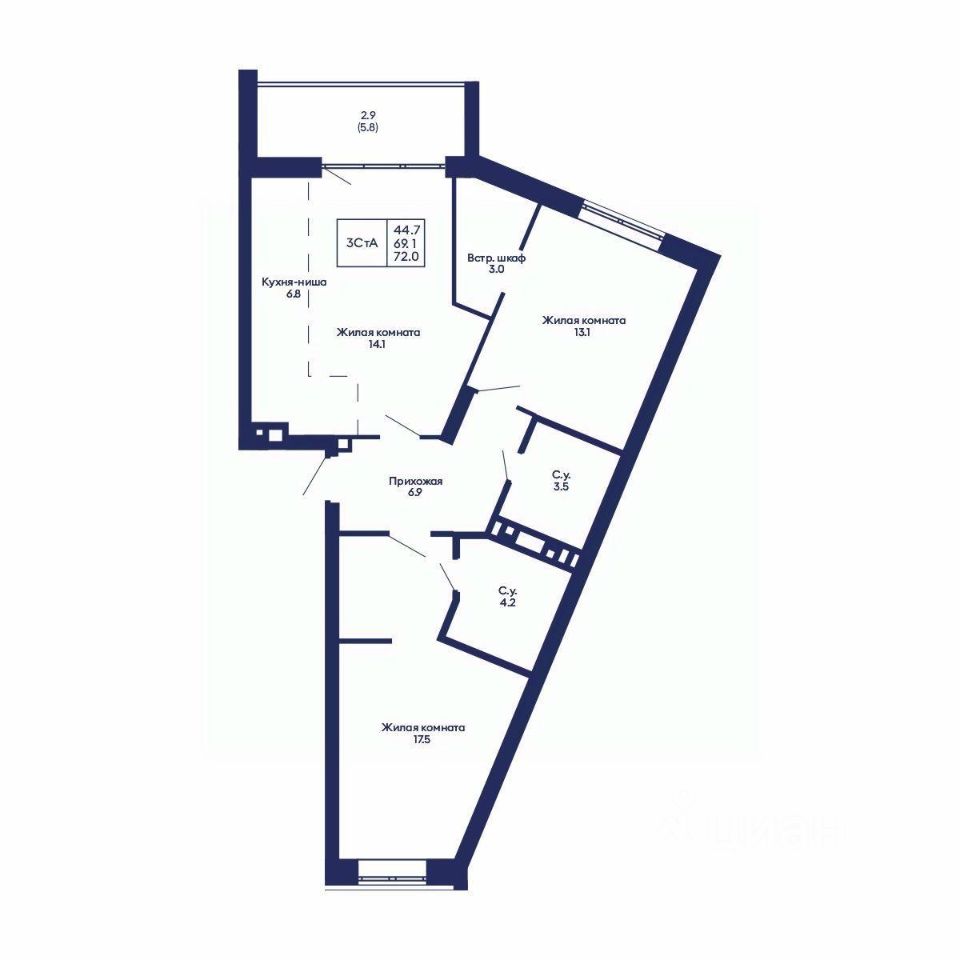 Общая площадь72 м2