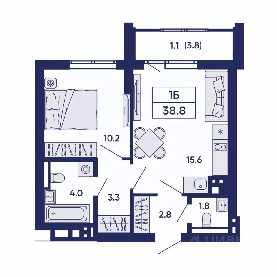 Общая площадь38,8 м2