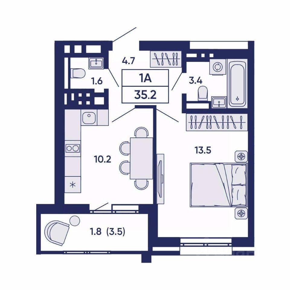 Общая площадь35,2 м2