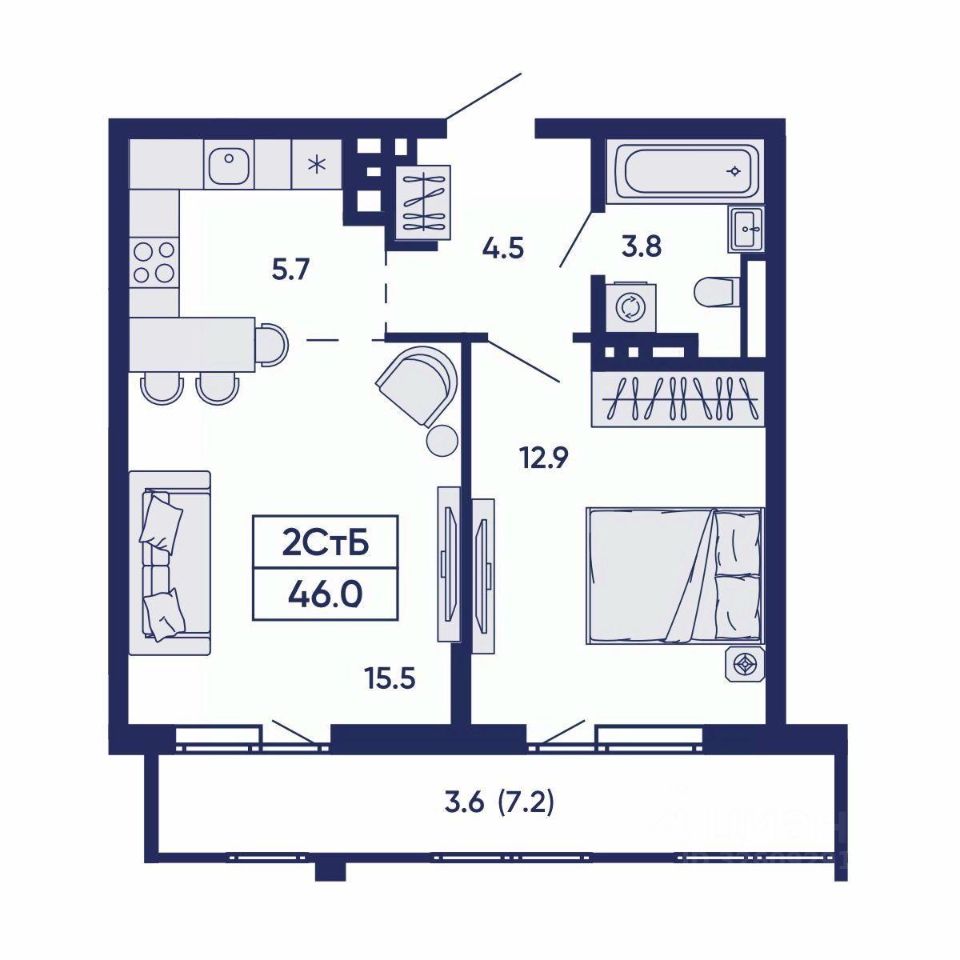 Общая площадь46 м2