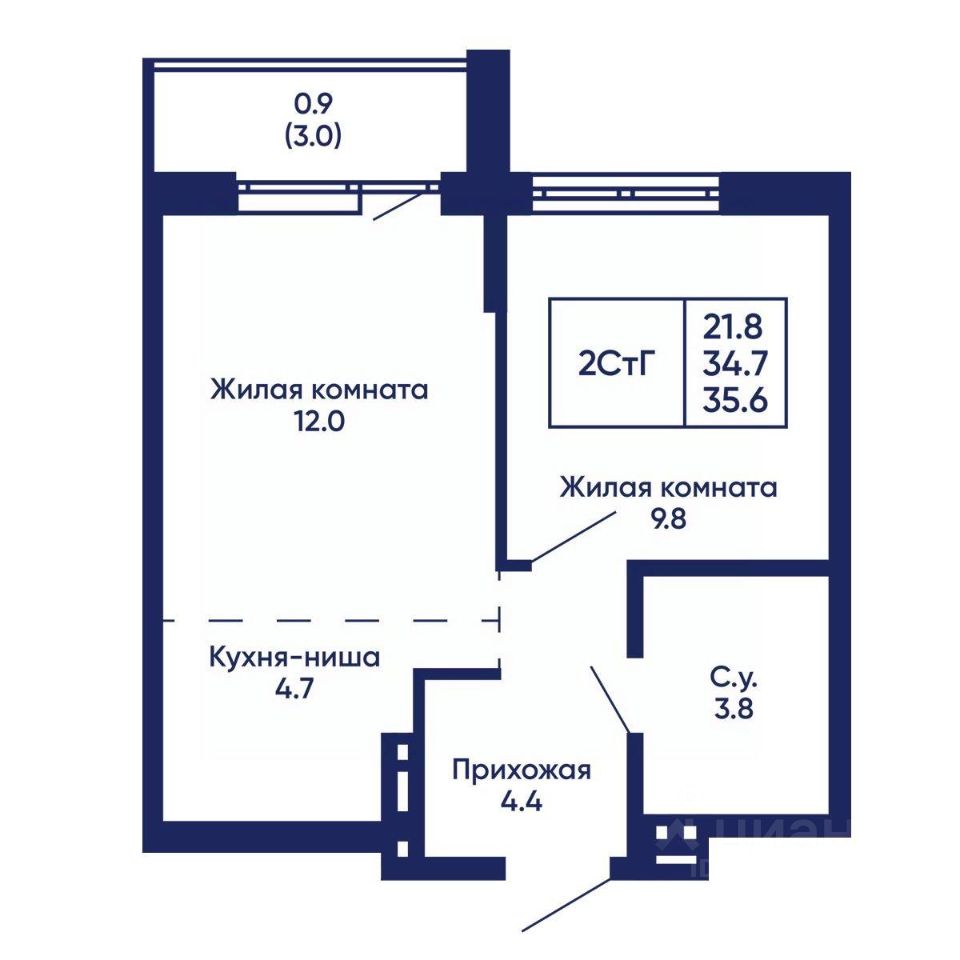 Жилая площадь21,8 м2