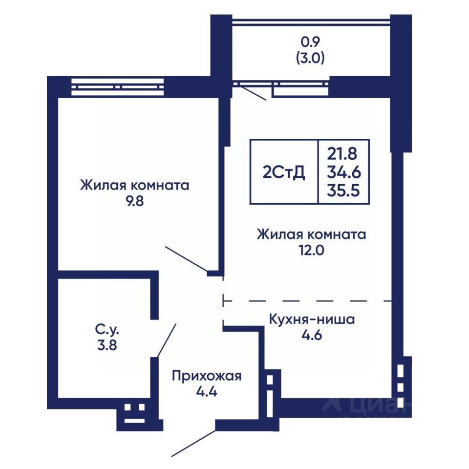 Жилая площадь21,8 м2