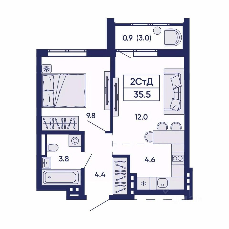 Для Вас в ЖК Gorizont есть квартира с ремонтом (1-комнатная квартира 85, 38,9 кв²)!