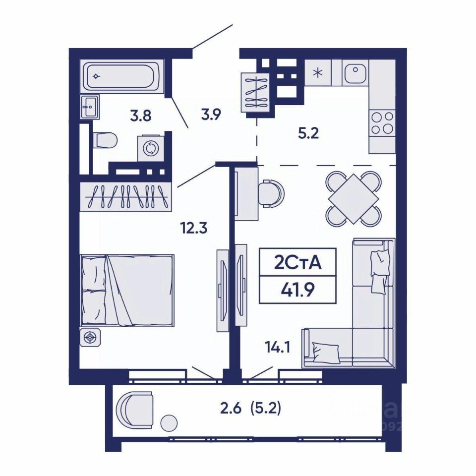 Общая площадь41,9 м2