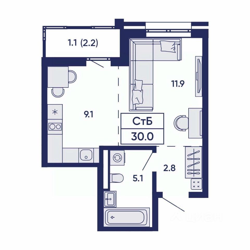 Общая площадь30,2 м2
