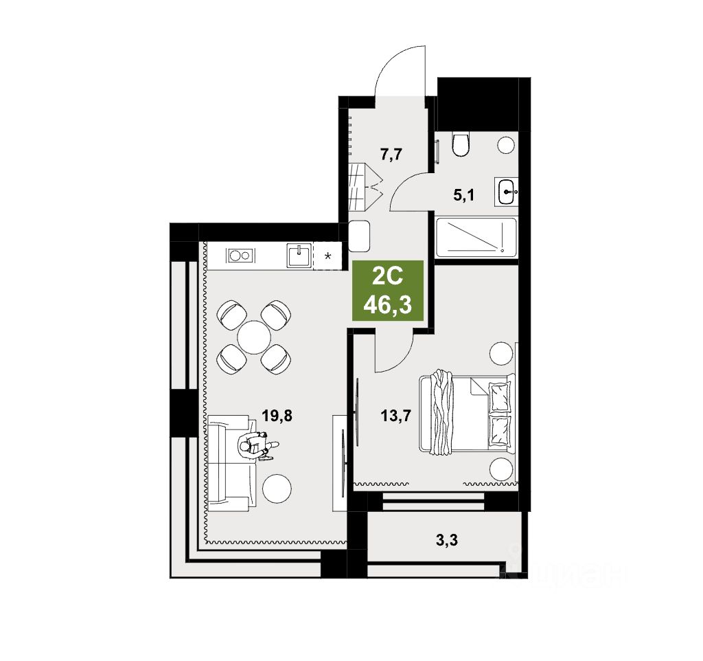 Продаются 1-комнатные апартаменты в строящемся доме (4 очередь), срок сдачи: IV-кв. 2026, общей площадью 46.3 кв.м., на 8 этаже. Это динамичная среда для молодых людей, готовых жить по стандартам завтрашнего дня. Разработчики проекта учли главную ценность людей нового поколения - мобильность. Ответом на этот запрос стали комфортабельные арендные дома комплекса, позволяющие молодым людям жить рядом с местом работы в деловом центре города, строить сo-working схемы, достигать бизнес-целей, кооперироваться для решения задач, используя общее пространство и самые современные технологии. Идея строительства арендных домов поддерживает тренд последних лет в среде молодых профессионалов - жить там, где трудишься сейчас.