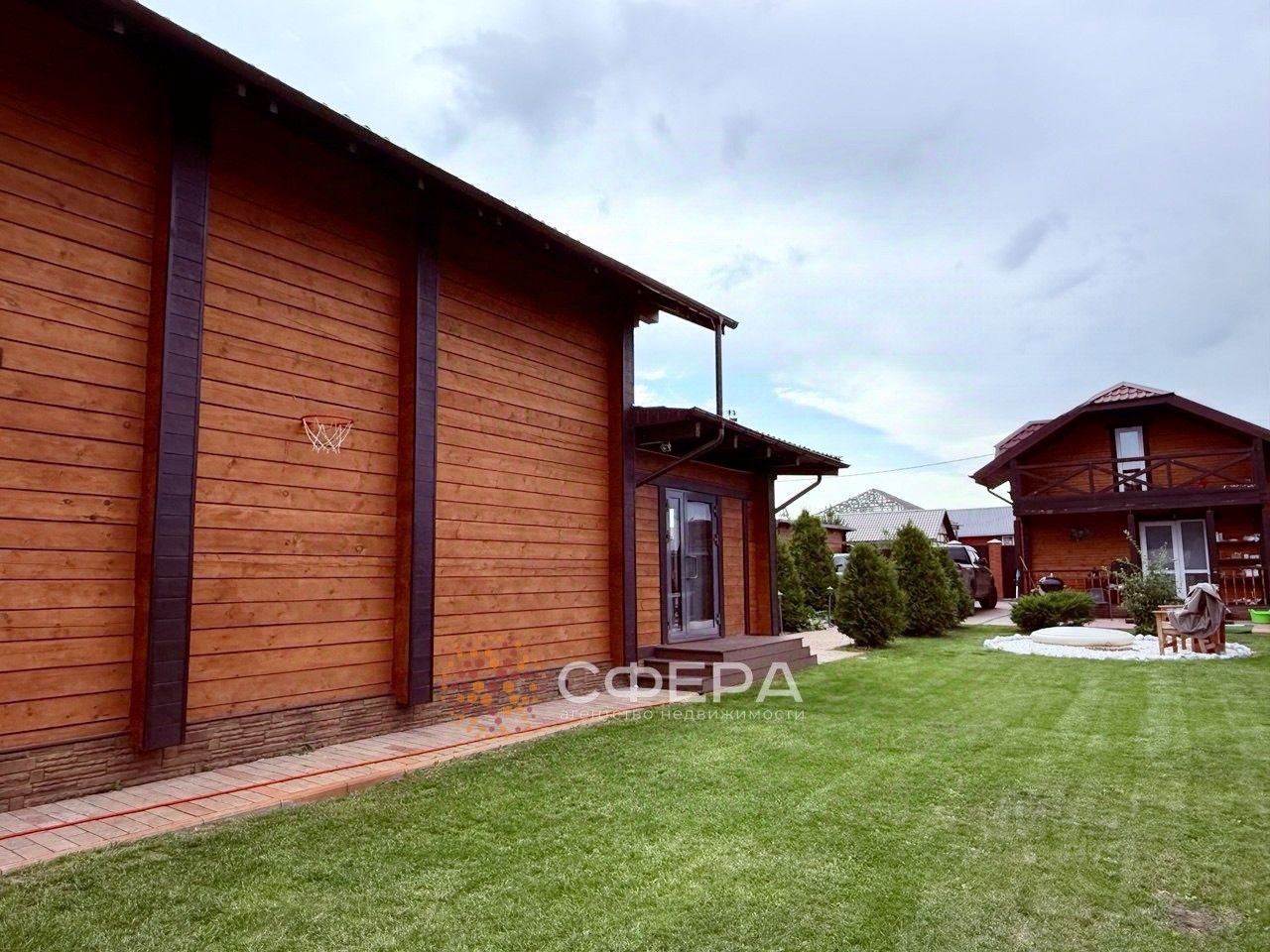 УЧАСТОК — как из журнала: • Профессиональный ландшафтный дизайн • Туи, ели, сосны — много хвойных деревьев • Детская площадка • Гараж • Хоз. постройка • Подсветка всех тропинок • Новогодняя гирлянда по дому создаёт атмосферу уюта круглый год