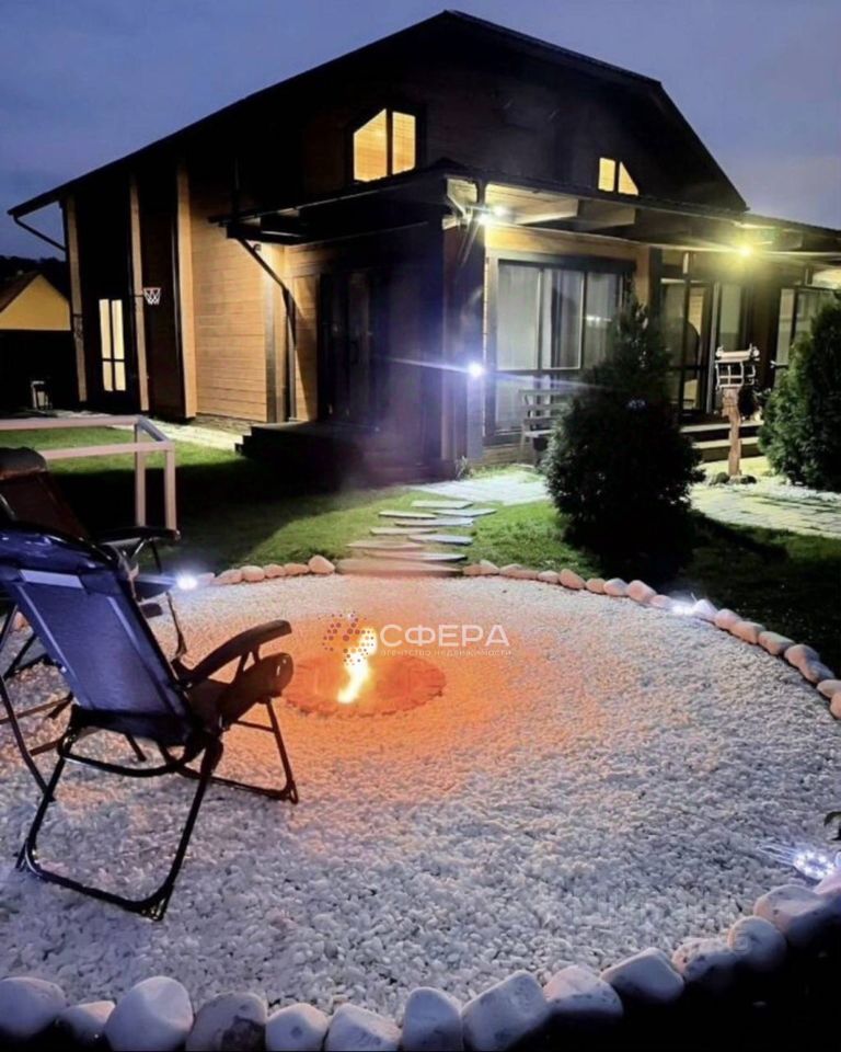 Гостевой дом/баня 53 м² (отапливаемый) Парная, помывочная, санузел, терраса, комната отдыха, балкон. Участок с ландшафтным дизайном: туи, ели, сосны, подсветка дорожек, детская площадка, гараж и хозблок.