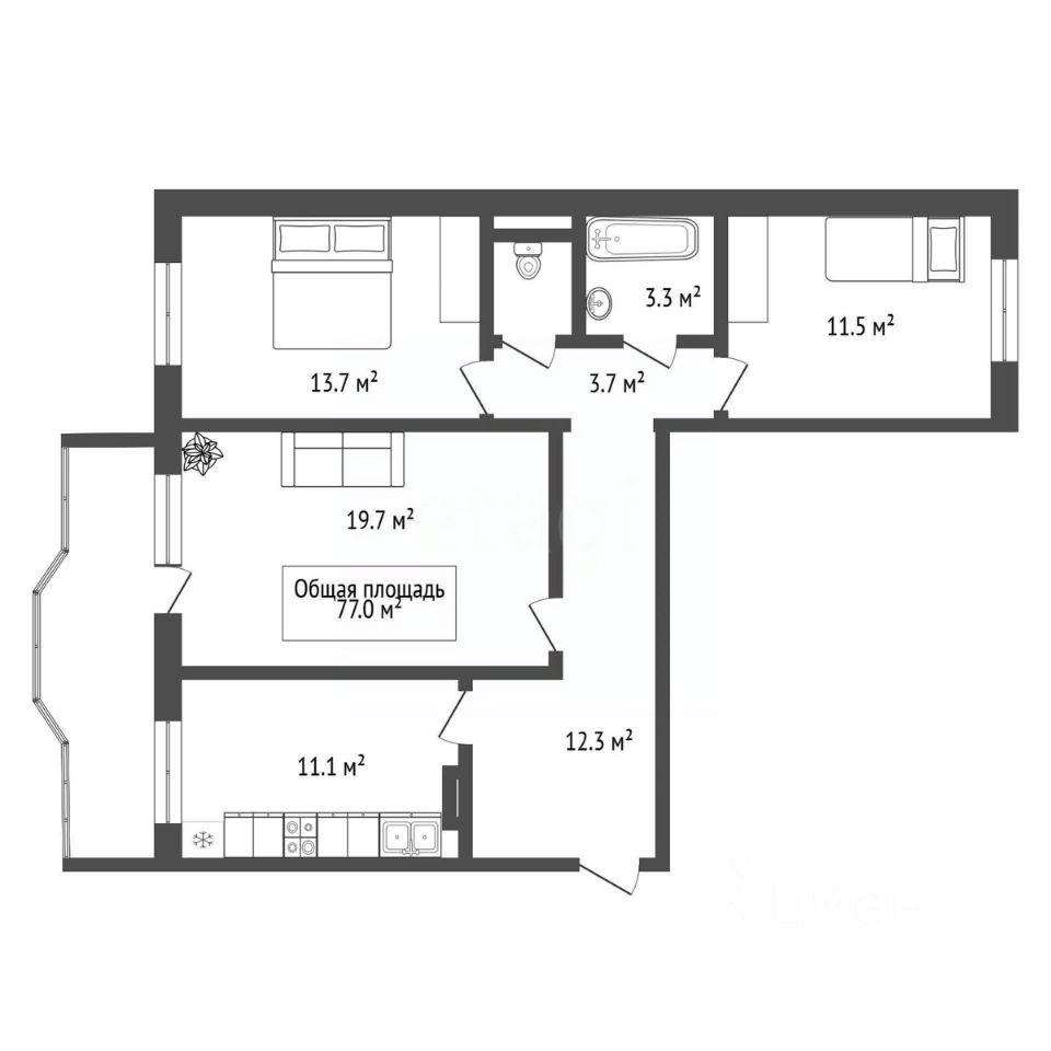 Все комнаты правильной формы,просторные и светлые Окна выходят на 2 стороны,что позволит свободно проветрить квартиру и наполнить ее солнечным светом.