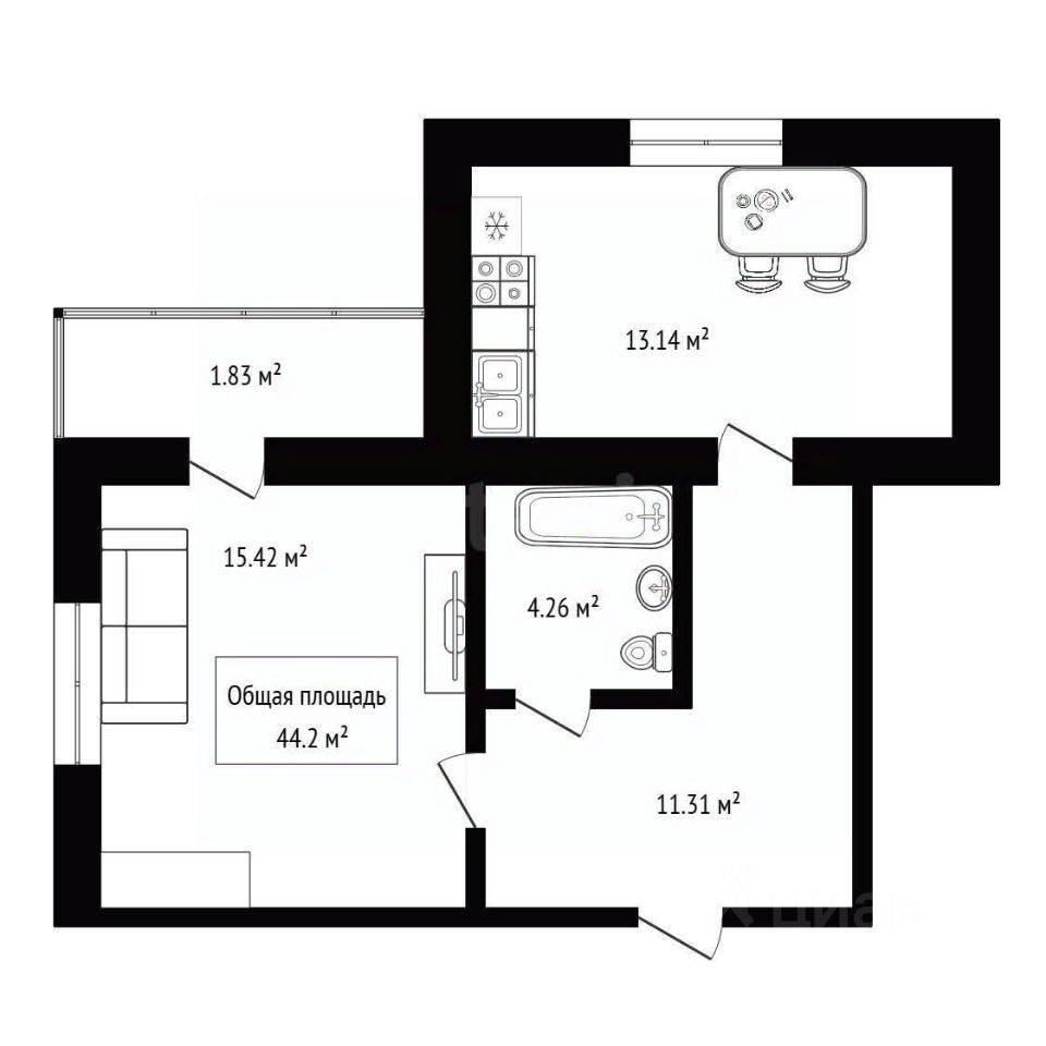 Кухня-зал 15кв.м