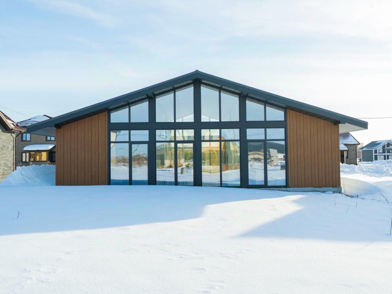 Дом построен на свайно-ростверковом фундаменте. Это обеспечивает надёжность и долговечность конструкции, а также позволяет избежать проблем с усадкой здания.