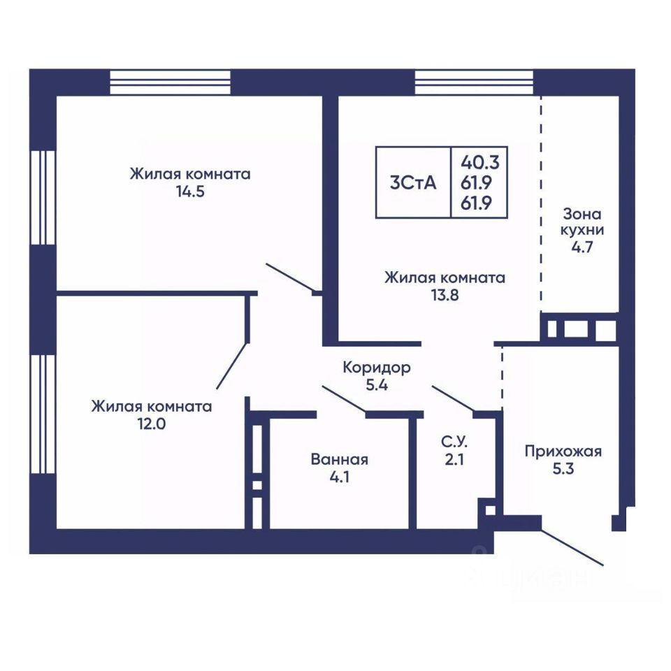 Общая площадь61,9 м2