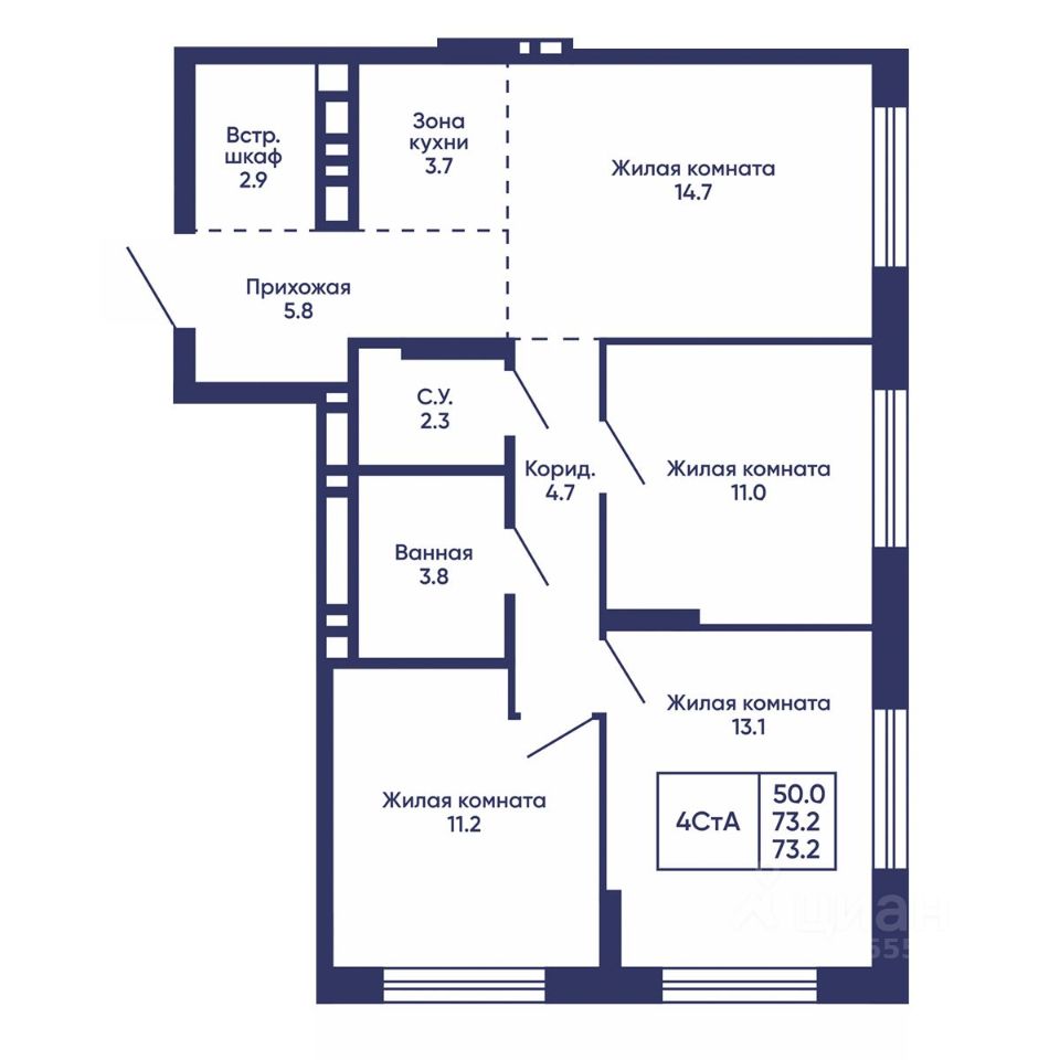 Общая площадь73,2 м2
