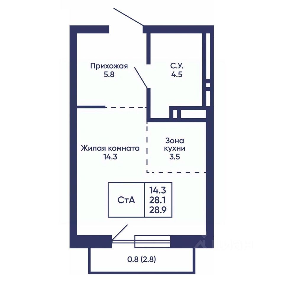 Общая площадь28,9 м2