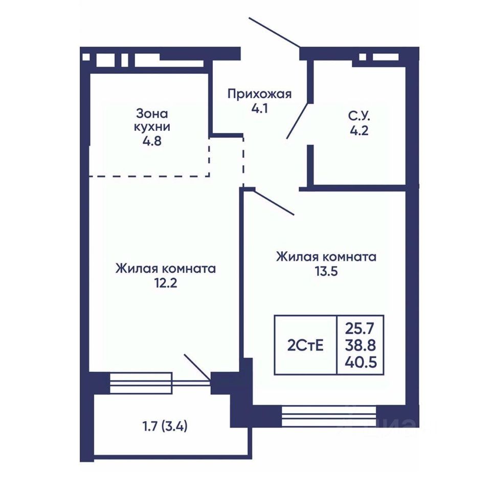 Общая площадь40,5 м2