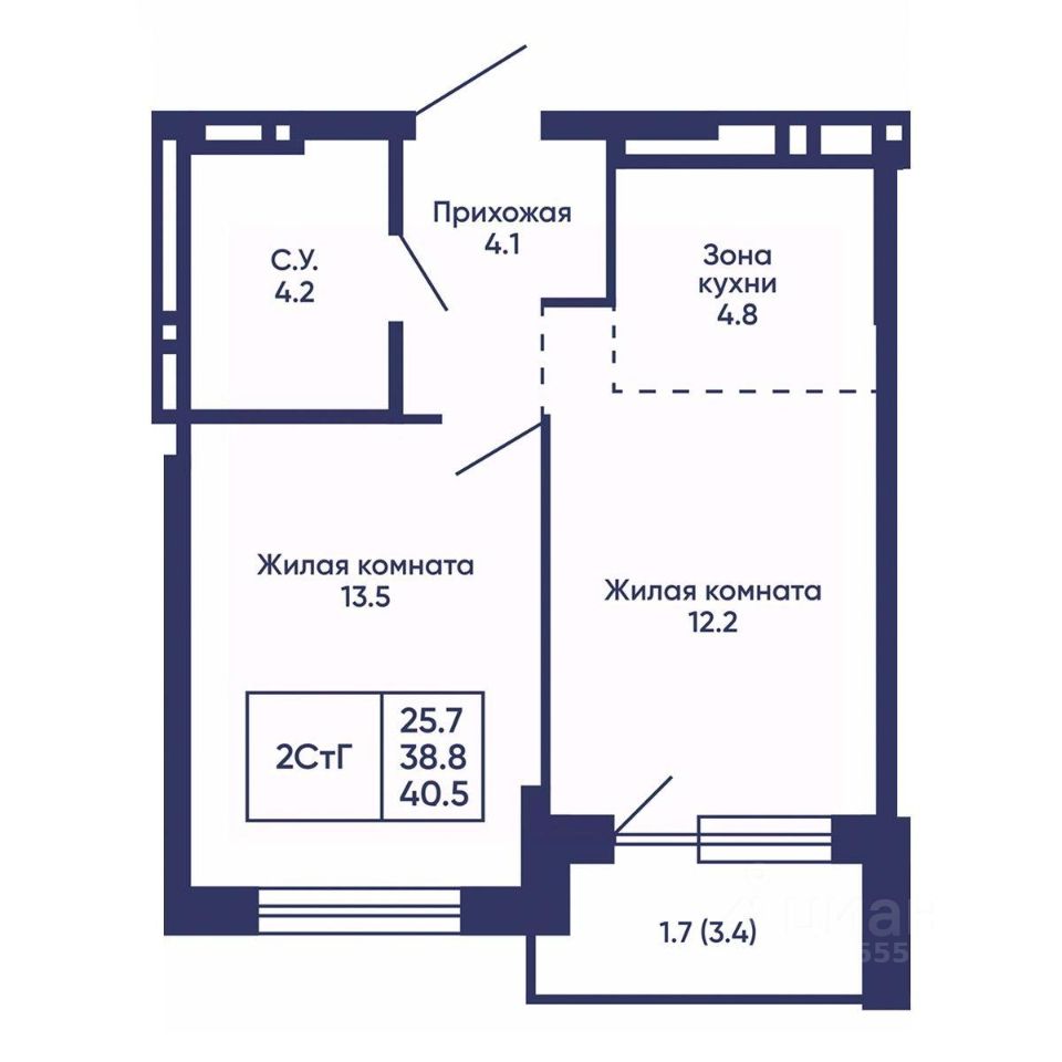 Общая площадь40,5 м2