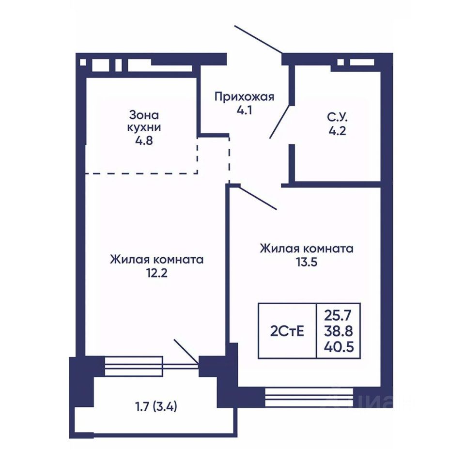 Общая площадь40,5 м2