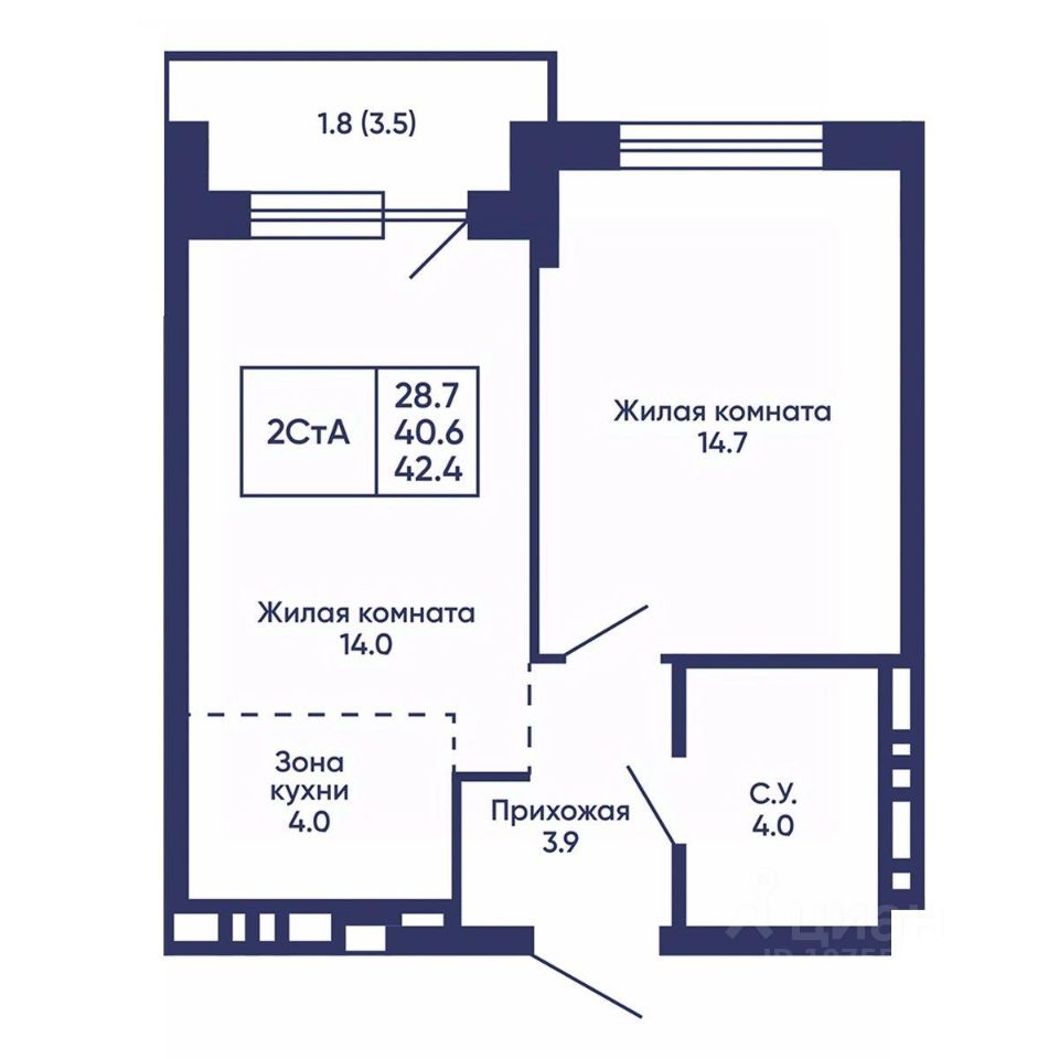 Общая площадь42,4 м2