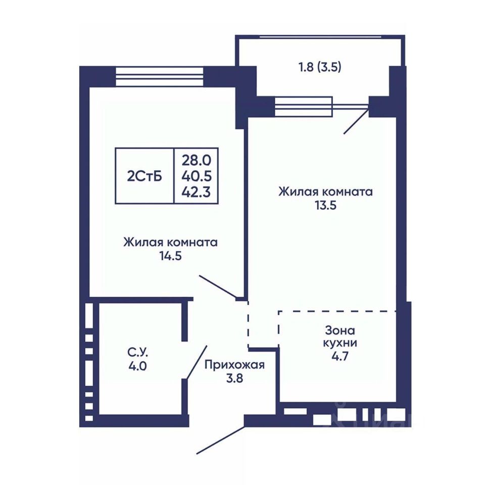Общая площадь42,3 м2