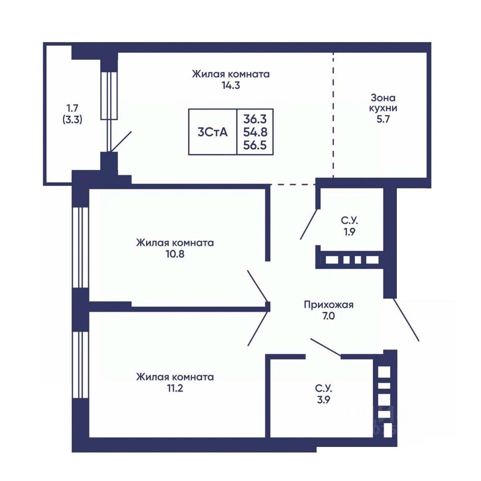 Общая площадь56,5 м2