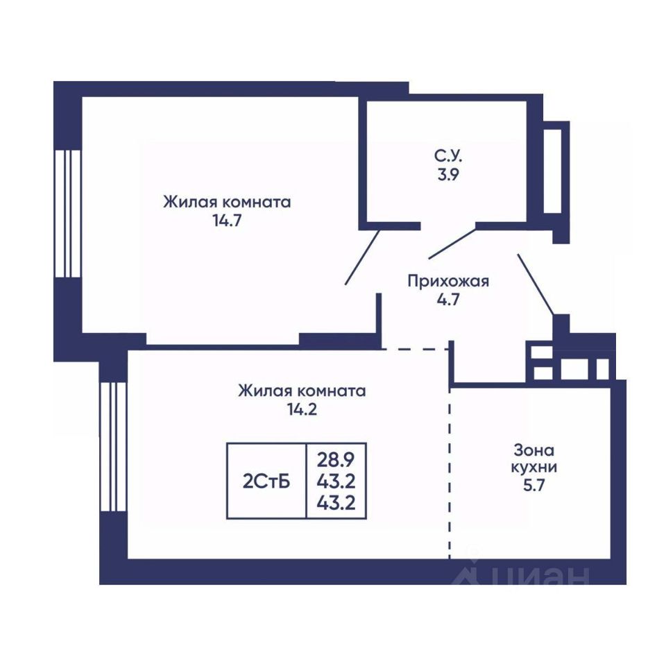 Общая площадь43,2 м2