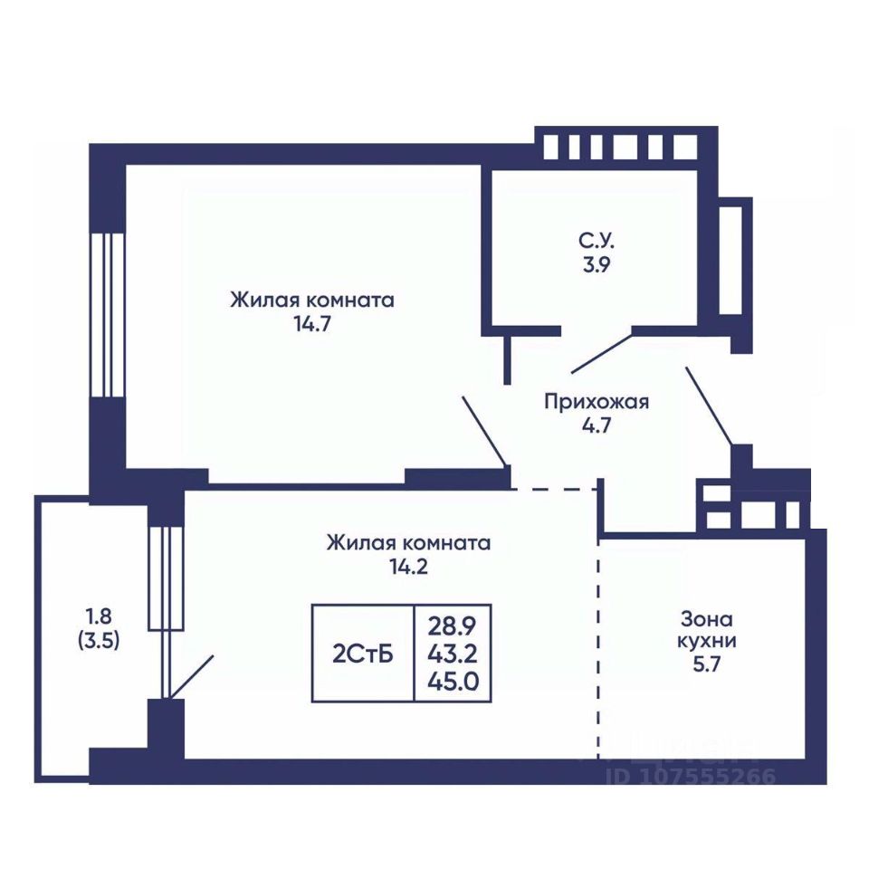 Общая площадь45 м2