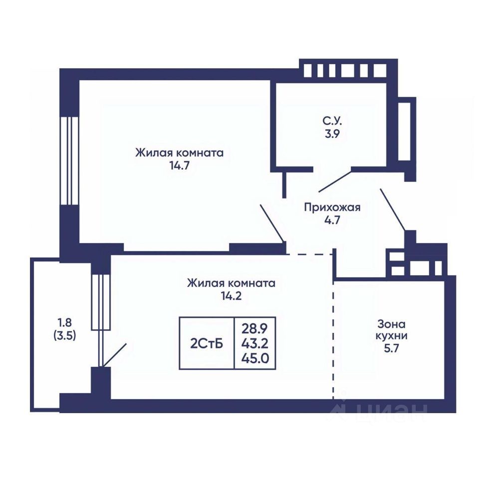 Общая площадь45 м2