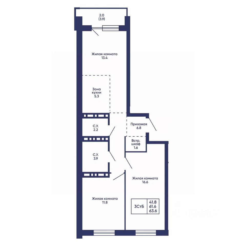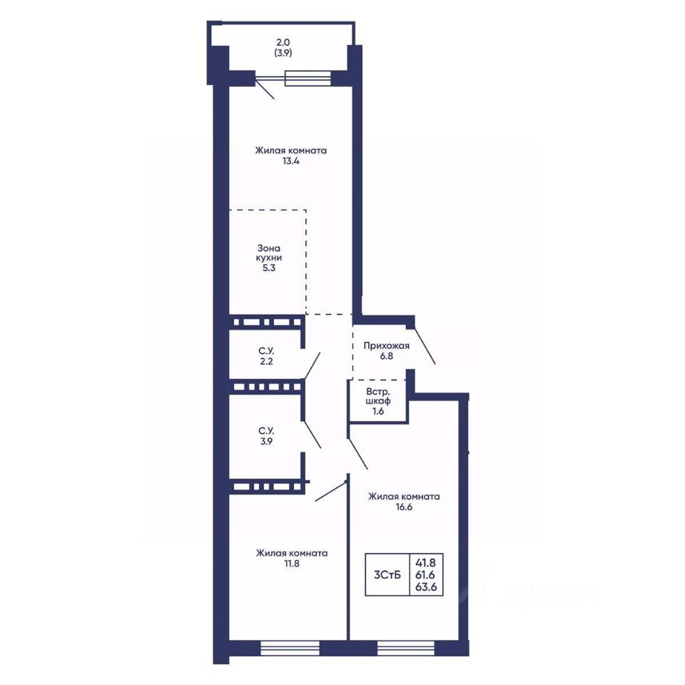 Общая площадь63,6 м2