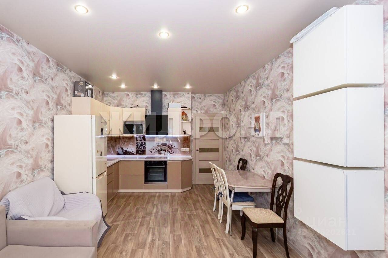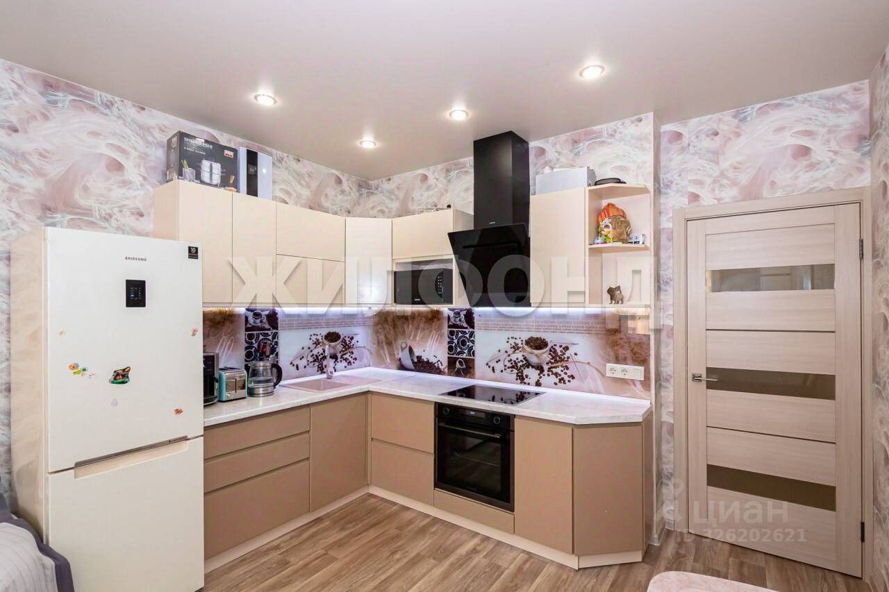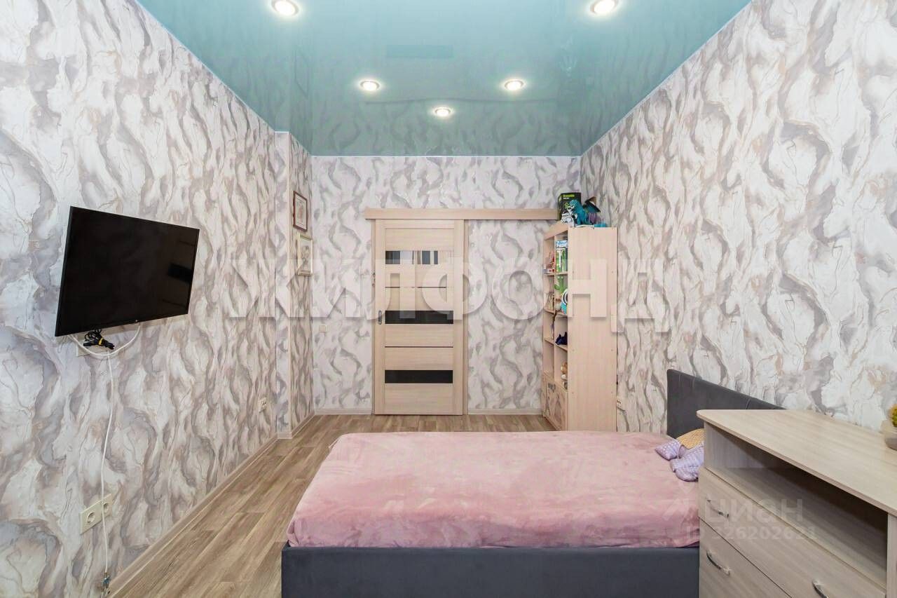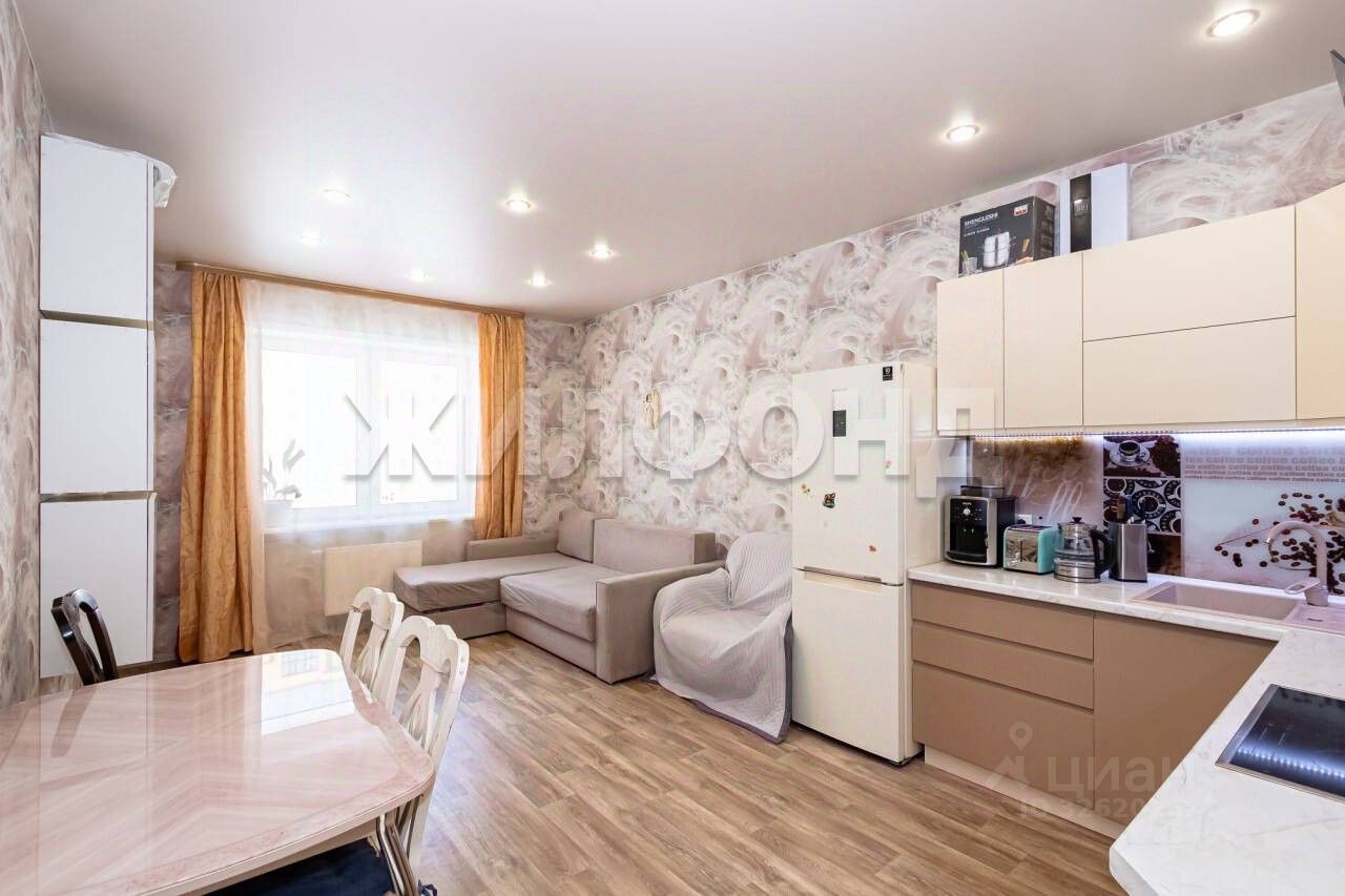 Продается двухкомнатная студия с ремонтом в новом доме. В квартире натяжные потолки, новые обои в комнатах, линолеум на полу, остается встроенная мебель и техника. В кухонной зоне фартук из закаленного стекла. В санузле искусственный камень, теплый пол. Лоджия оббита рейкой, остеклена. Въезд на территорию через шлагбаум, большой двор с детской и спортивной площадкой, парковочные места во дворе. Вся инфраструктура в пешей доступности: поликлиника, магазины, школа, До НГУ три остановки.