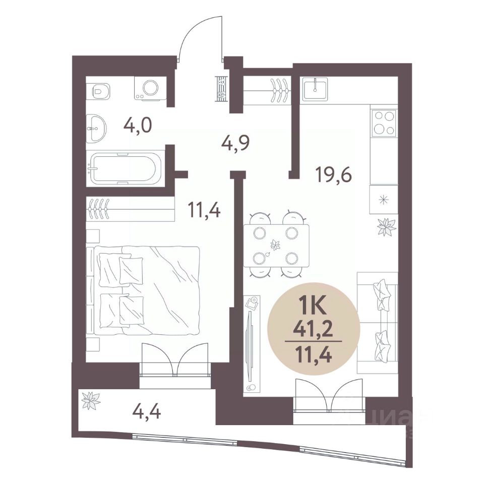 Общая площадь41,2 м2