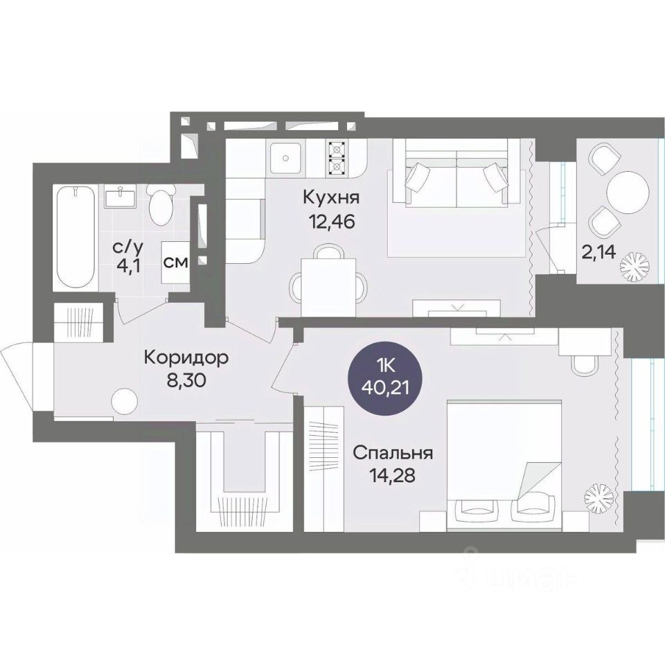 Общая площадь40,21 м2