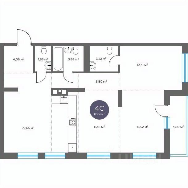 Общая площадь89,31 м2
