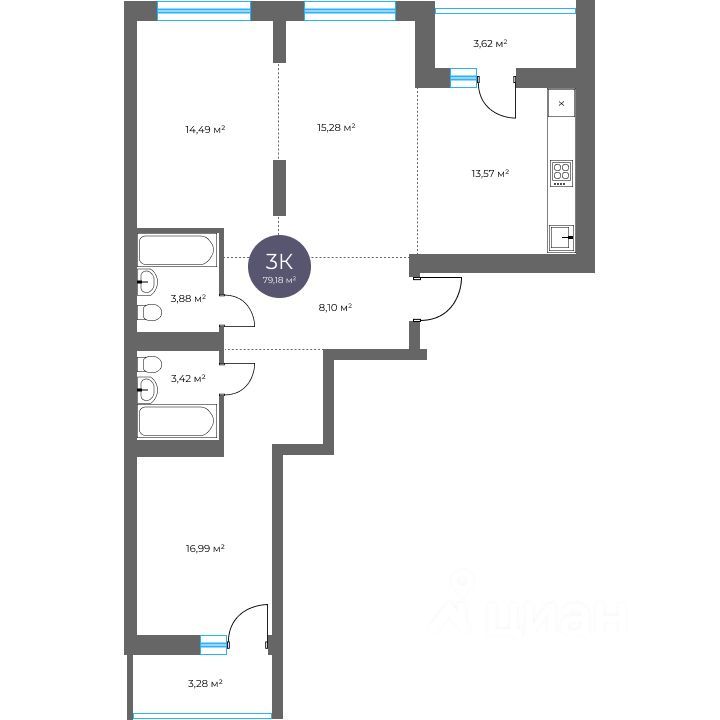 Общая площадь79,18 м2