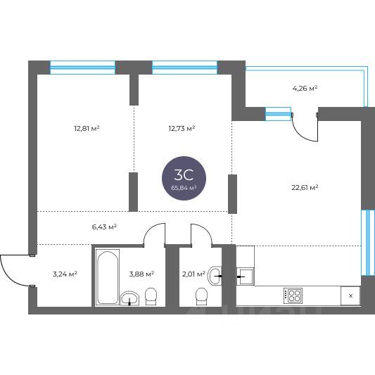 Общая площадь65,84 м2