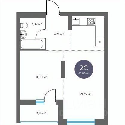 Общая площадь42,08 м2